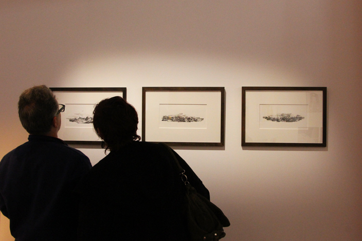 Sur Internet, nous avons désormais à la portée d'un clic un nombre inimaginable de livres, plus que nous pourrions en lire en une vie. Books Scapes s'intéresse à ces documents numérisés qui présentent une nouvelle matière potentiellement infinie. En numérisant les livres, nous numérisons également des images qui deviennent à leurs tours accessibles. Ces images, car c'est bien de cela dont il s'agit, se révèlent d'une grande richesse dans leurs textures; papiers, mises en pages, illustrations... laissant apparaître dans leurs particularités la matérialité du support qui les portent. La page d'un livre dans laquelle on aperçoit le morceau de l'image correspondant à une partie du paysage.Books Scapes est une série de paysage qui se compose de 100 morceaux d'images extraites de divers livres (libre de droit). L'internaute perçoit un paysage qui se dessine aux allures mi-gravure, mi-dessin laissant apparaître en noir et blanc une vue imaginaire d'un pays qui n'existe pas. Si à première vue le paysage semble être unique, en réalité, le paysage qui nous est proposé est un collage méticuleux de multiples éléments de livres entre eux. Il se dévoile lorsque l'Internaute clique sur une partie de la grande image, ce dernier est alors redirigé vers la page du livre en question, vers un ailleurs... La série Books Scapes exposée lors du 60eme salon de Montrouge. |
