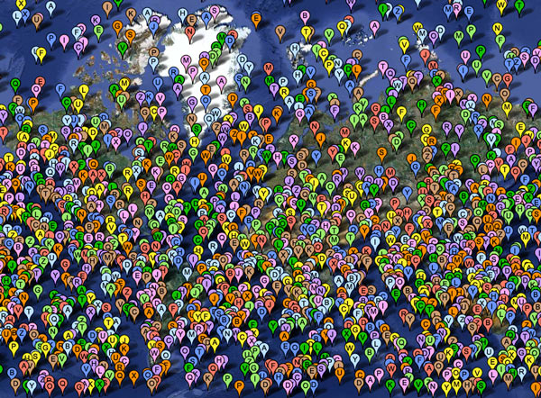 Marker Attack est une animation sur une carte satellite interactive Google maps. Celle-ci se trouve littéralement envahie par des marqueurs de toutes sortes jusqu'à la disparition totale de la surface de la terre. Un monde marqué, augmenté, submergé de signes se révèle à nous. |