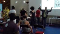 Distribution de pousses autocollants pendant Futur en Seine 2011.